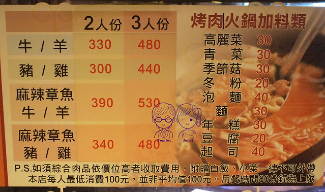 每人低消NTD.100,用餐時間限制80分鐘 (如果沒有客滿,就不會趕人) ~~
